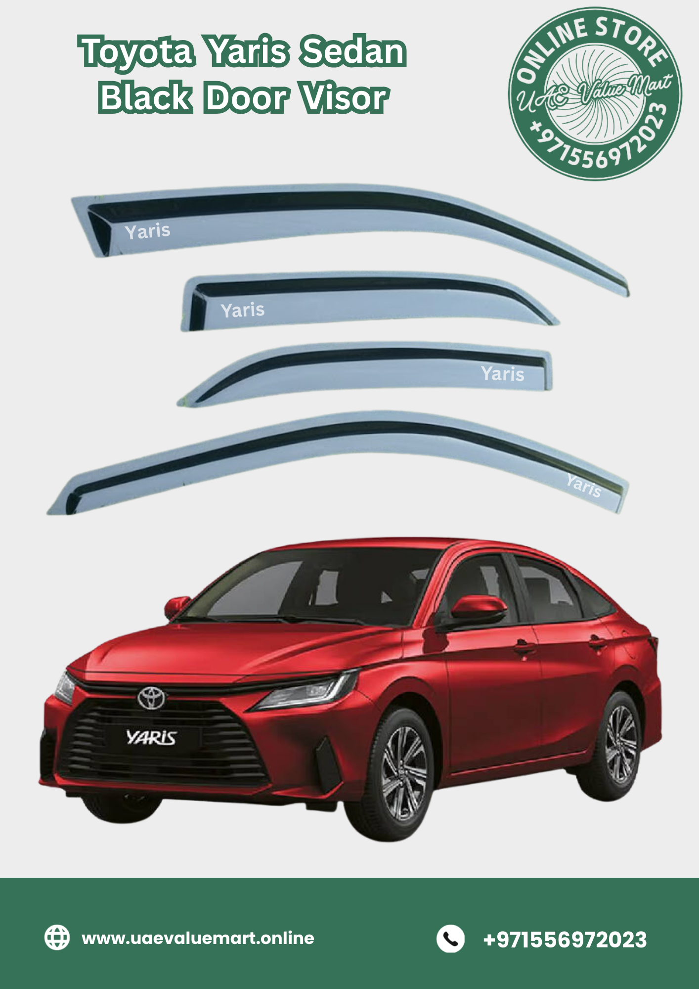 Toyota Yaris Sedan Black Door Visor Premium Quality